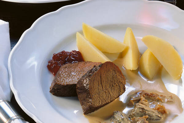 Rosa gebratener rehrücken ohne knochen zubereiten.